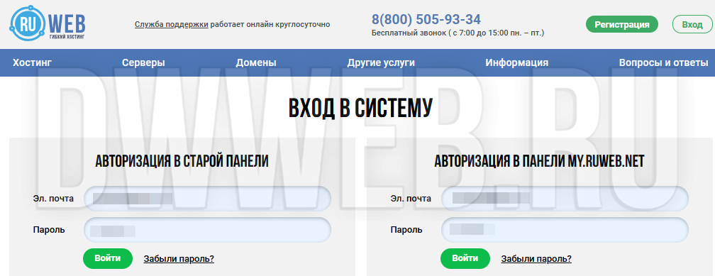 Продление хостинга на ruweb в старом дизайне...